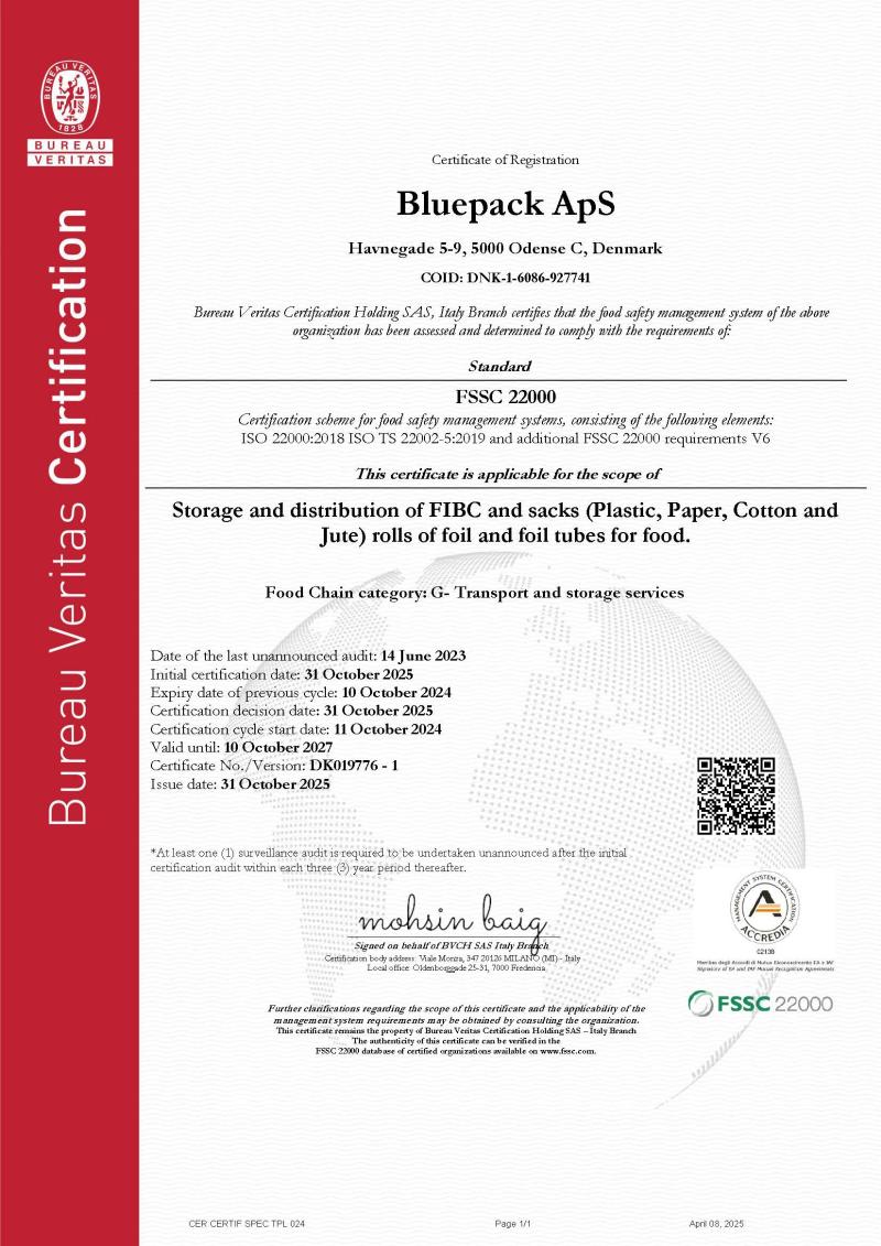 Bluepack ApS er en troværdig samarbejdspartner og arbejdsplads med fokus på rette kvalitet, arbejdsmiljø, miljø og CSR.